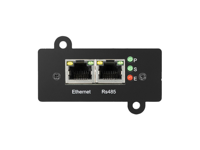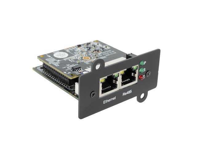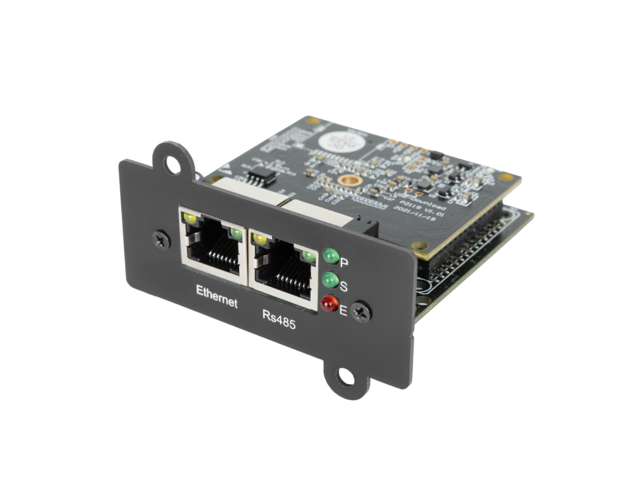 Modbus RTU (485): the card can operate as Poll (master), where in this mode it allows querying up to 8 external sensors/devices, or as Slave, providing UPS parameters to e.g. PLC controllers. The modes are switchable and mutually exclusive.